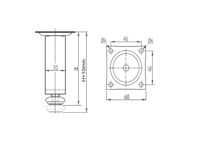• Reguleeritava kõrgusega kapi jalg 150-160 mm