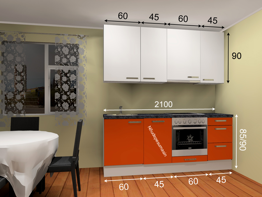 Valamukapist paremal on koht integreeritavale nõudepesumasinale (sisaldab ust ja sokklit)