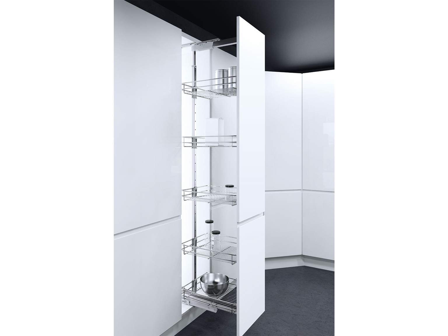 Kõrge kapi alumises osas 1 riiul ja ülemises osas 3 riiulit. Kapi saab kohandada ka integreeritava külmiku jaoks. Tellimisel täpsustada külmiku mudel