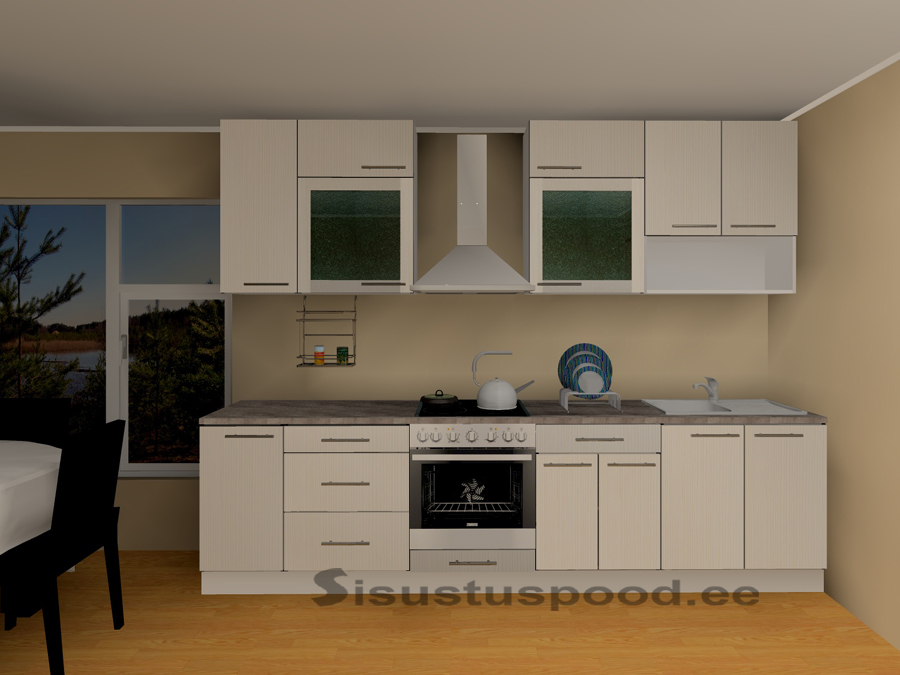 Pildil olev tööpind ei kuulu komplekti, vali sobiv viimistluste alt (valamu ja pliidiplaadi ava ei ole sisse lõigatud). Võimalik tellida sama viimistlusega taustasein