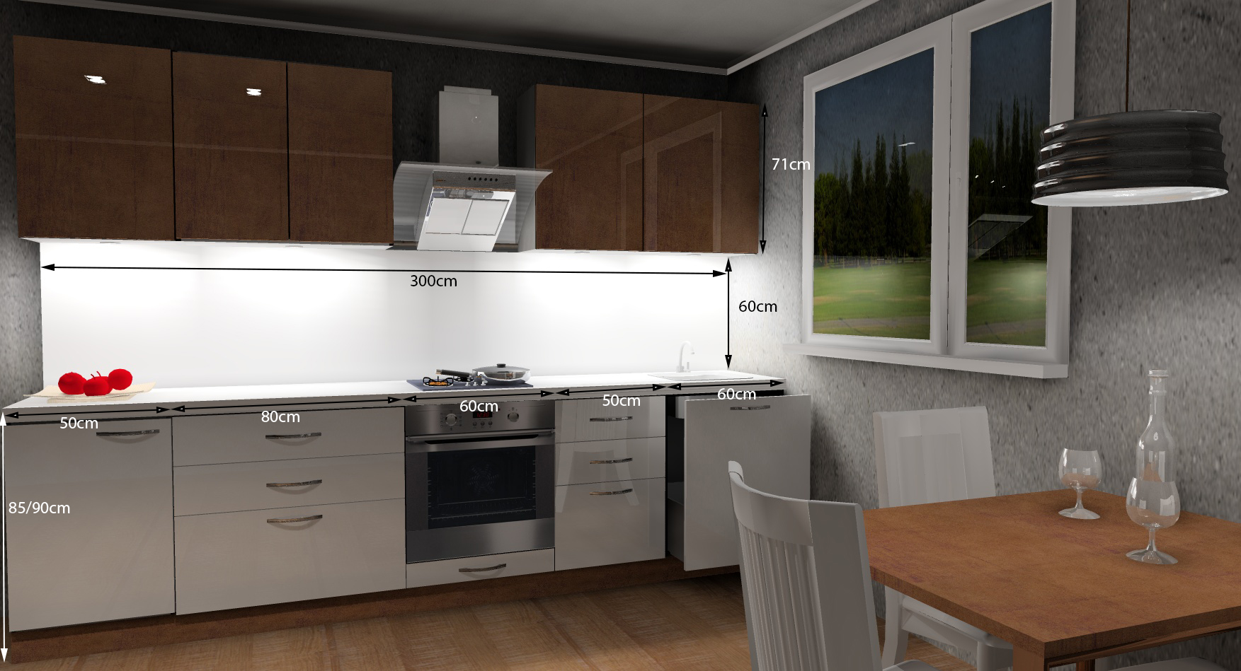 Viimistlused pildil: Korpus valge, Ülemised uksed ja sokkel Cuzco Cobre, Alumised uksed ja taustasein Luxe Blanco. Tööpind valge Alumiste kappide sügavus 57cm+uks 1,8cm Ülemiste kappide sügavus 32cm+uks 1,8cm Tööpinna sügavus 60cm
