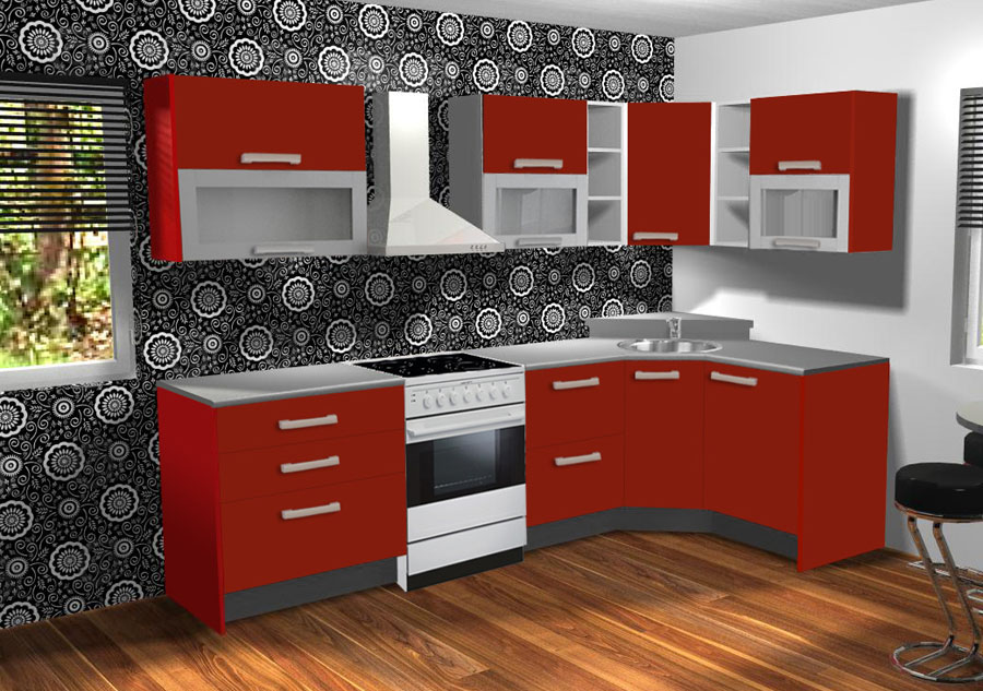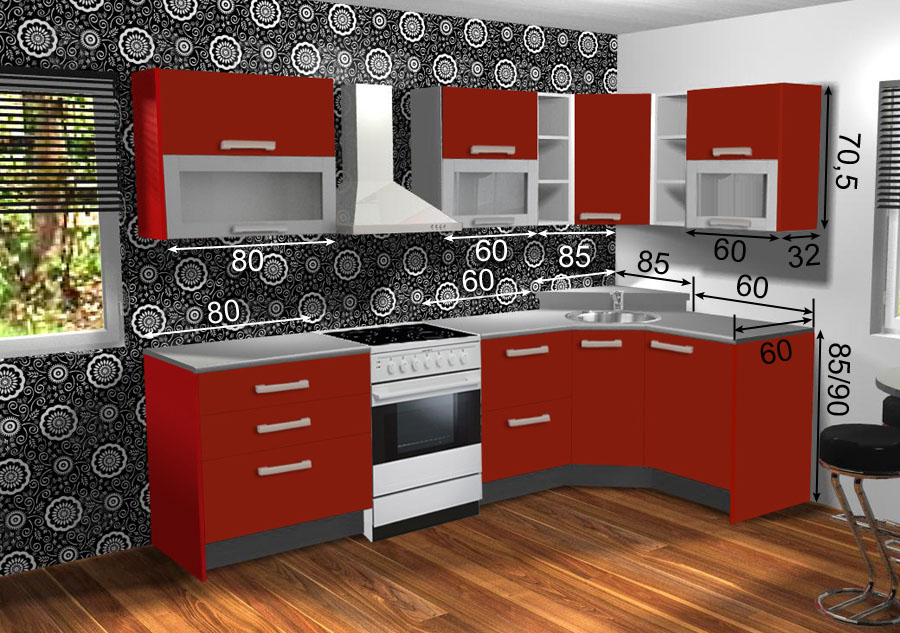 - Ülemise nurgakapi ukse taga on 1 riiul, alumine nurgakapp valamu jaoks on ilma riiuli ja tagaseinata, alumisel 60 cm kapil on 1 riiul