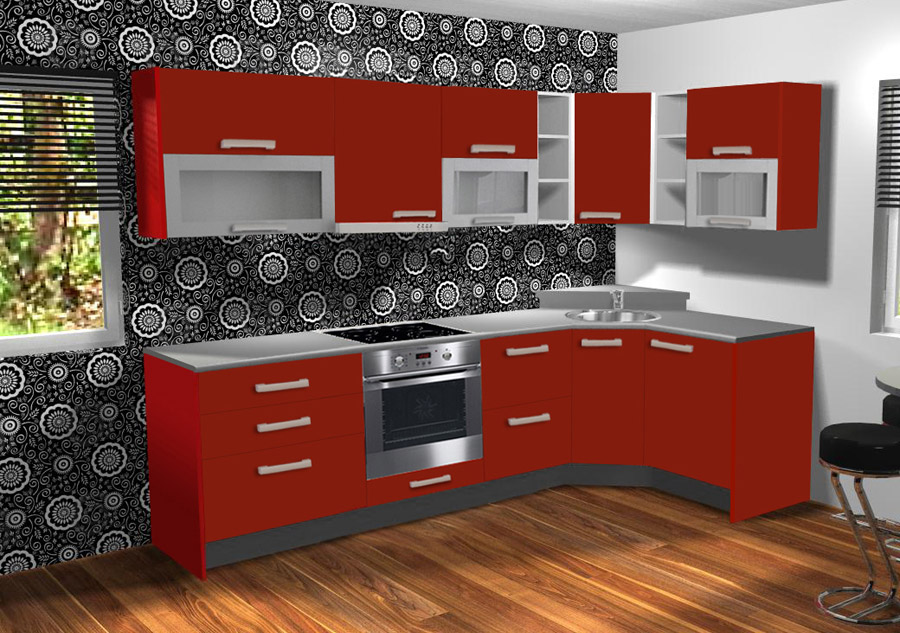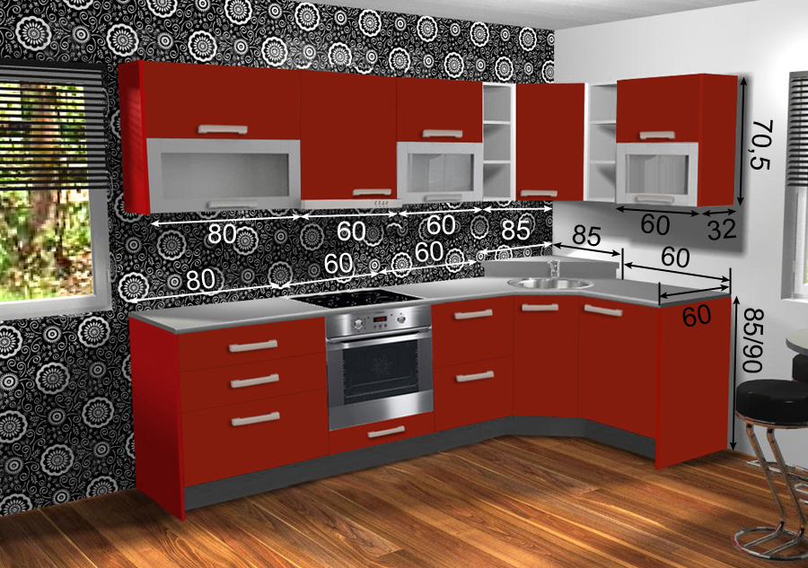 - Ülemise nurgakapi ukse taga on 1 riiul, alumine nurgakapp valamu jaoks on ilma riiuli ja tagaseinata, alumisel 60 cm kapil on 1 riiul