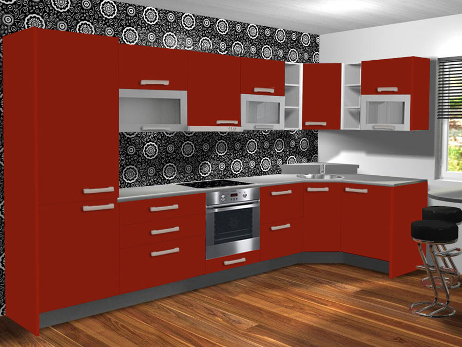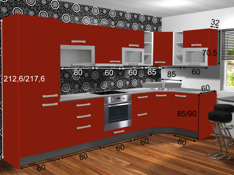 - Ülemise nurgakapi ukse taga on 1 riiul, alumine nurgakapp valamu jaoks on ilma riiuli ja tagaseinata, alumisel 60 cm kapil on 1 riiul, kõrgel kapil on alumises osas 1 riiul ja ülemises osas 3 riiulit