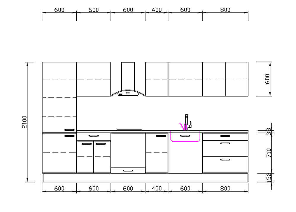 Ülemised kapid on käepidemeteta, avanevad uksepaneeli alt servast tõmmates küljele