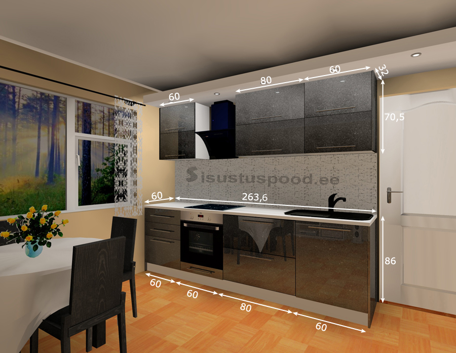 - Köögitehnika, valgustid, valamu, segisti ja taustasein ei sisaldu algses tootehinnas