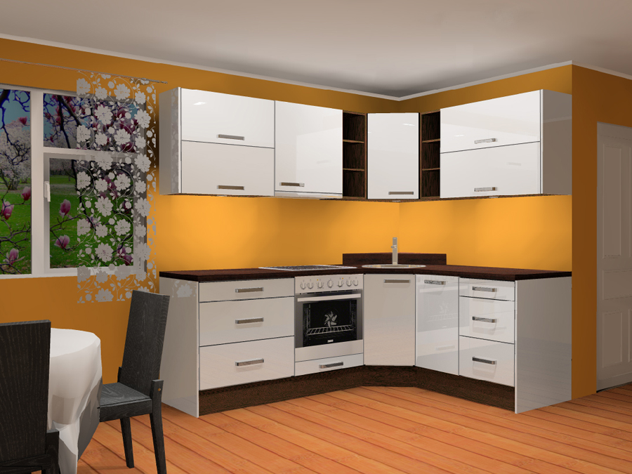 Viimistlused pildil: korpus wenge, uksed valge kõrgläige, tööpind wenge, sokkel wenge