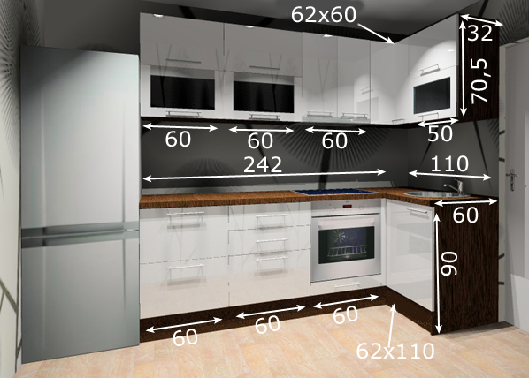 Köögi mõõdud: 242 cm x 110 cm