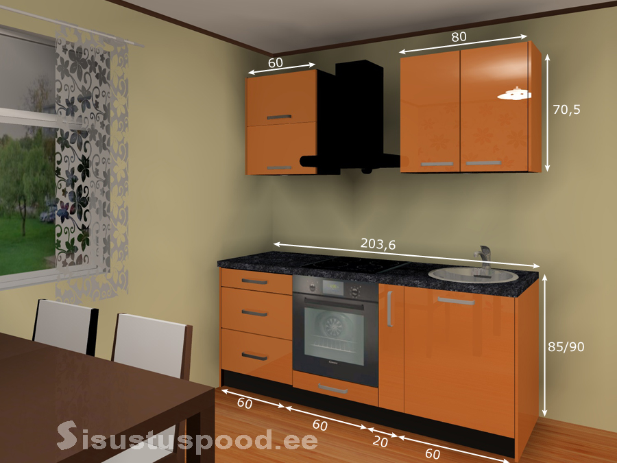 - Valamukapi kohal on 80cm nõuderestikapp (nõuderesti saab valida sidustoodete alt)