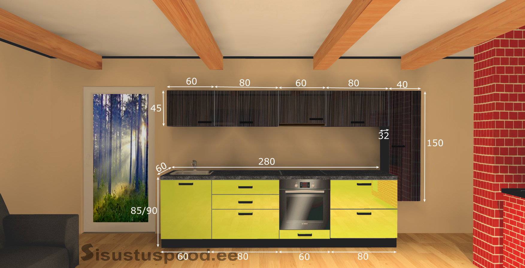 - Köögitehnika, valgustid, valamu, segisti ja taustasein ei sisaldu algses tootehinnas