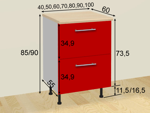 Laius: 30, 40, 45, 50, 60, 70, 80, 90, 100 cm Kõrgus: 85/90 cm