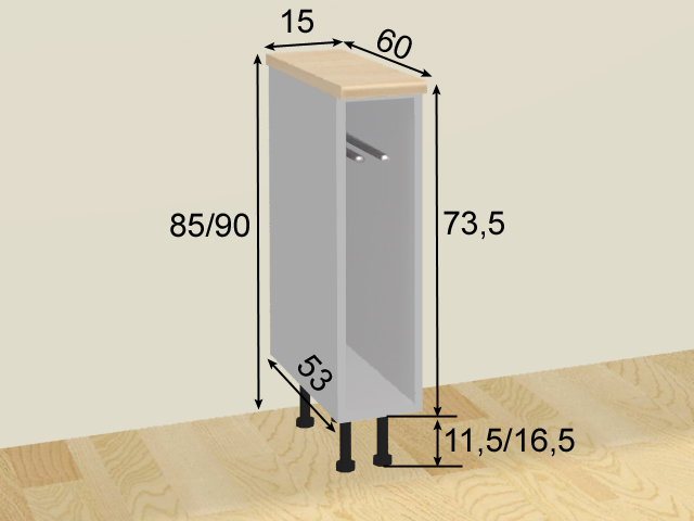 Laius: 15, 20, 25 cm Kõrgus: 85/90 cm