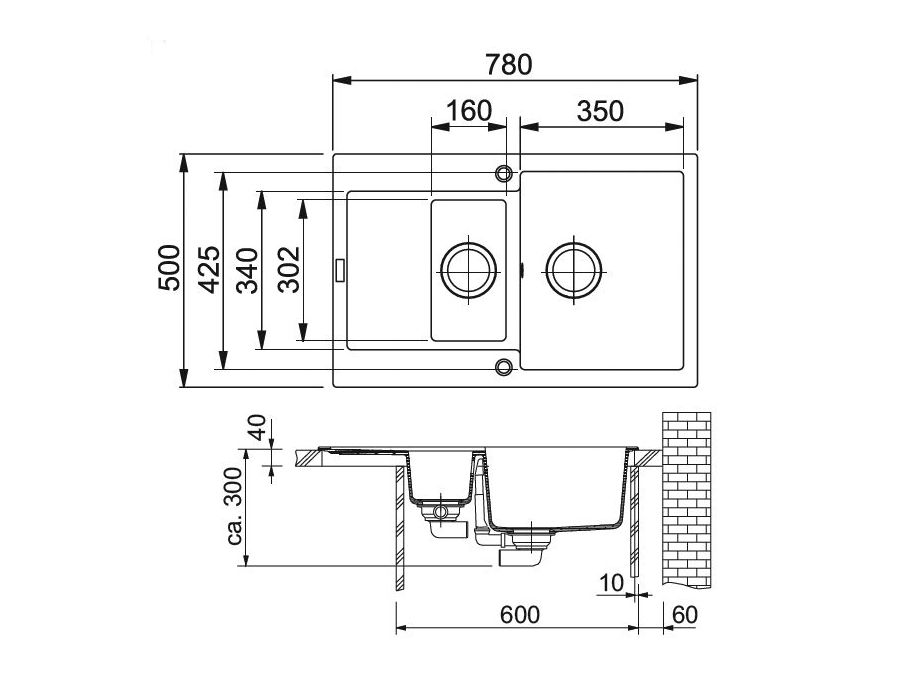 - Kausi mõõtmed - 350 /425 /200 + 160 /300 /120 mm