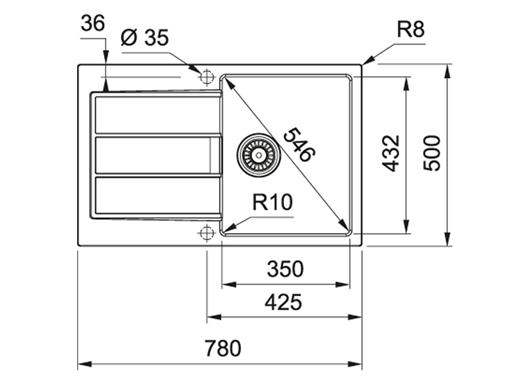 - Väljalõige - 764 x 484 mm (R= 7,5 mm)