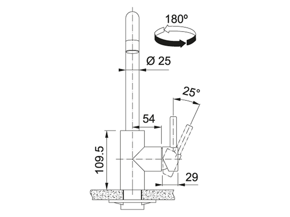 • Vee väljavool - Fikseeritud otsikuga pööratava tilaga