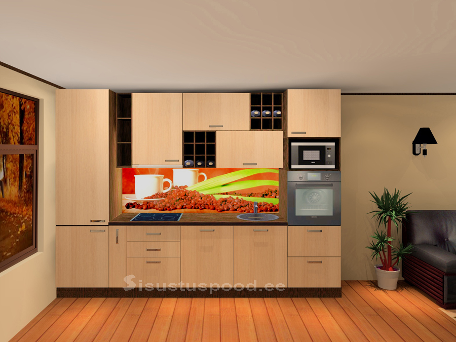 Pildil olev tööpind ei kuulu komplekti, vali sobiv viimistluste alt (valamu ja pliidiplaadi ava ei ole sisse lõigatud). Võimalik tellida sama viimistlusega taustasein