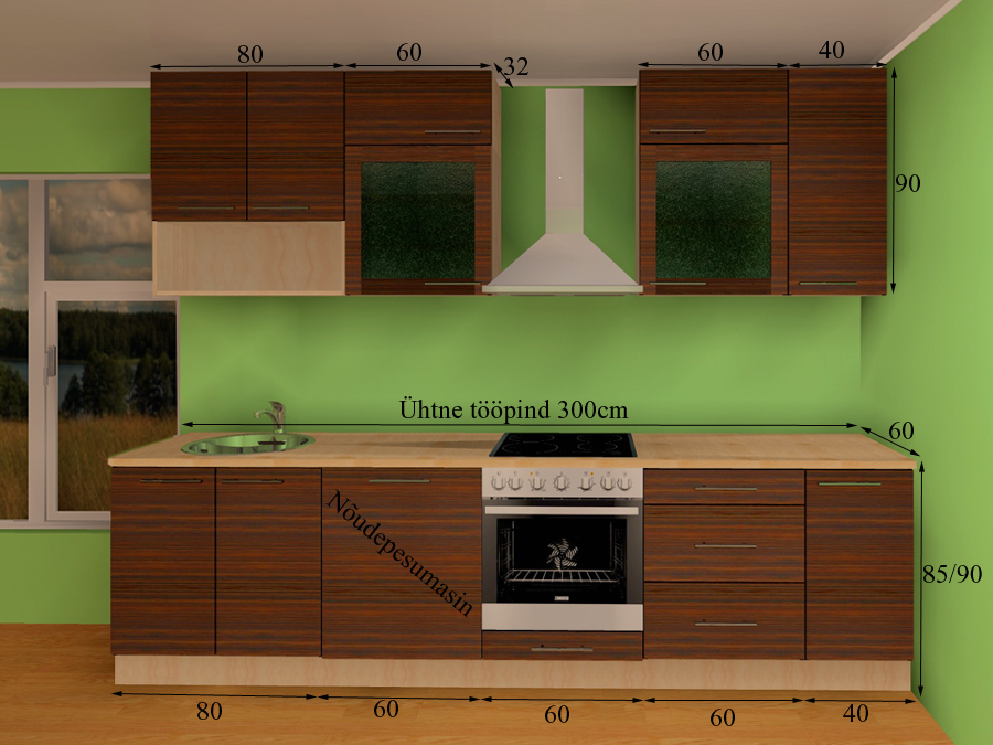 Valamukapist paremal on koht integreeritavale nõudepesumasinale (sisaldab ust ja sokklit)
