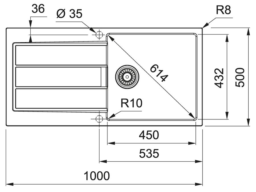 - Väljalõige - 984 x 484 mm (R= 7,5 mm)